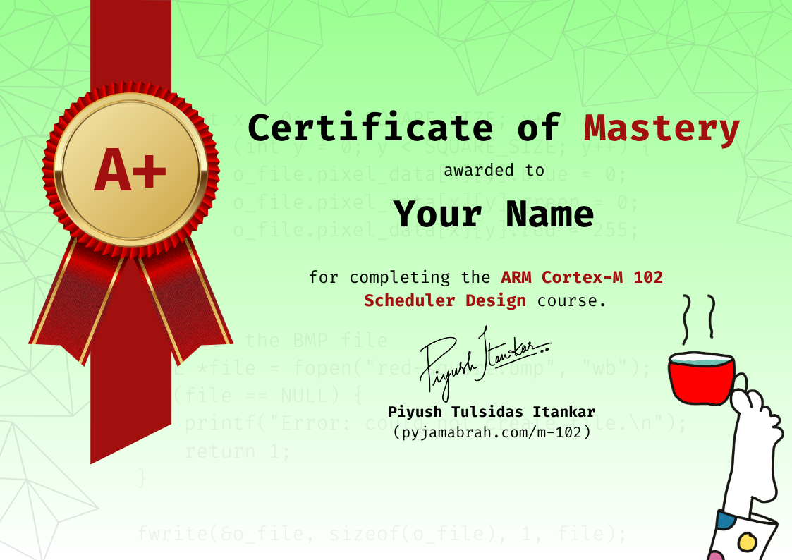 Learn the assembly programming for ARM Cortex-M CPUs by writing a scheduler from scratch, without using any IDE, SDK or boiler plate code. A scheduler is at the heart of every operating system.